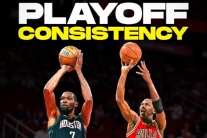 杜兰特生涯171场季后赛全部得分上双 仅次于乔丹的179场