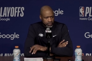 莫斯利:我觉得这就是能够派上不同的球员去轮番消耗对手。每个人都在接受自己的角色,明白在这些时刻我们需要他们做什么。这就是他们的回应方式。当他们替补上场时,会想“我需要做什么来帮助球队”。我们的防守达到了我们所需要的正确水平。我认为我们球员的身体对抗也达到了我们需要的要求。同样,我要再说一次,我们还有很多需要改进的地方,但我们能够保持努力,在局势可能变得不利时保持冷静,我们的球员在这方面做得非常出色。