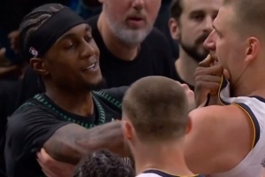 比赛最后时刻约基奇和麦克丹尼尔斯发生冲突,多人卷入其中,两人都被驱逐。