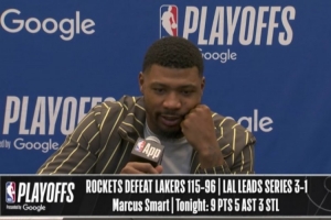 体育资讯4月27日讯 在今天结束的一场季后赛中,湖人以96-115不敌火箭,大比分3-1领先。赛后,湖人球员马库斯·斯玛特出席了新闻发布会。以下是完整版采访内容。