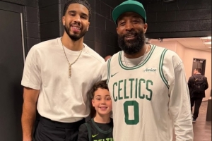 塔图姆父亲贾斯汀·塔图姆晒出了与儿子还有孙子的同框照,三人年龄分别为47岁、28岁、8岁。