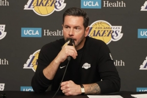 JJ·雷迪克:“我想说,我为我们的球队感到无比骄傲,为我们的球员和教练组在这个漫长的NBA赛季中所展现出的应对能力而自豪。我觉得,每个赛季可能只有那么一两支球队没有经历太多起伏,他们的赛季轨迹像过山车一样平稳。但对于绝大多数NBA球队来说,从失败中触底反弹的能力,才是决定你整个赛季成色几何的关键。你期望能赢下50场以上的比赛,期望能获得季后赛首轮的主场优势,成为上半区的种子球队。我知道,赛季初在座的各位没人看好我们能进前四,这就是现实,多数人都觉得我们顶多是支附加赛级别的队伍,甚至更糟。所以,我们不仅要承载外界对湖人这支球队的期望,还要消化每一次输球后自然伴随而来的负面情绪。我觉得我们的团队在这方面应对得非常出色。”