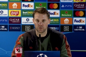 体育资讯4月14日讯 北京时间4月16日凌晨3:00,欧冠1/4决赛次回合,拜仁将坐镇主场迎战皇马,首回合拜仁2-1获胜。赛前,拜仁门将诺伊尔出席了新闻发布会,他谈到了球队的备战情况等话题。