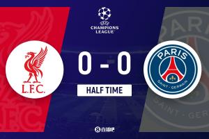 体育资讯4月15日讯 北京时间4月15日凌晨3时,欧冠四分之一决赛次回合,利物浦坐镇安菲尔德球场迎战巴黎。上半场双方均无建树,登贝莱错失一次破门良机,埃基蒂克无对抗情况下受伤离场,随后门德斯也因伤被替换下场。半场战罢,巴黎暂0-0利物浦。