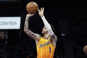 本场比赛,黄蜂当家球星拉梅洛·鲍尔上半场打得比较随意,但下半场恢复了合理的打法,全场他出战40分钟,31投仅12中、其中三分球16中2,拿到30分5板10助。